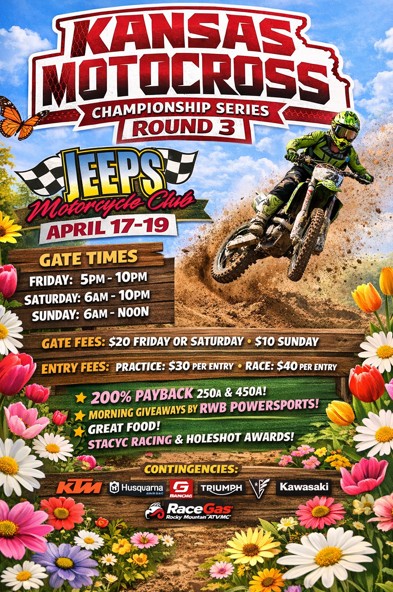 Hello! We are the Kansas MX Series! We host events at four different tracks across the state! We create family friendly environments while encouraging growth and progress to drive our riders to the top! Come join us in the race to claim a 2026 Top 5 Championship!